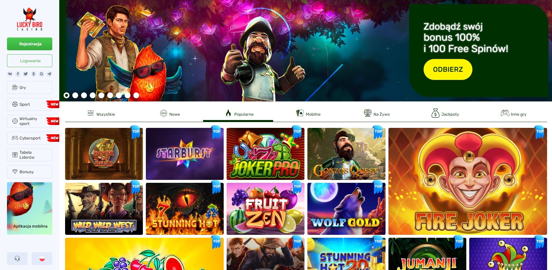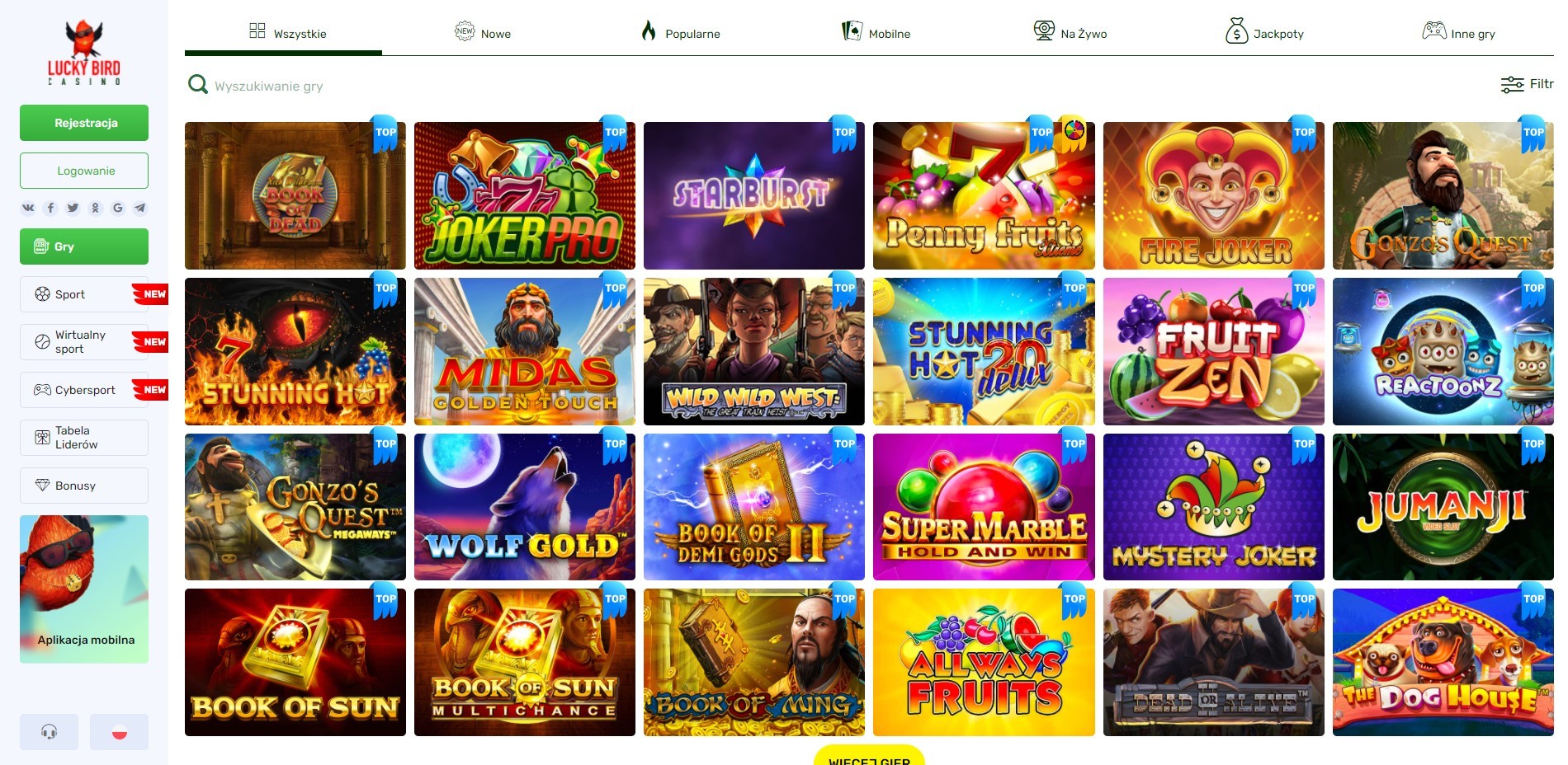 Wybór wszystkich tytułów na stronie kasyna jest praktycznie nieskończony, dzięki czemu gracze mogą wybierać spośród wszystkich kategorii i tematów bez limitów i ograniczeń. Gracze Lucky Bird na telefon mogą liczyć na pełne wsparcie wszystkich produkcji poprzez dostarczenie wersji mobilnej strony oraz dedykowanej aplikacji do pobrania w odpowiedniej zakładce u dołu widoku strony głównej.