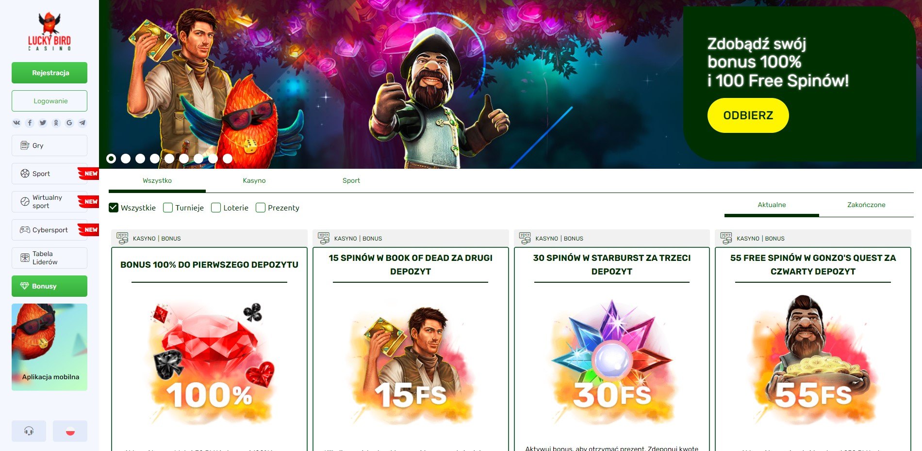 Lucky Bird to praktycznie nieskończony wybór różnego rodzaju gier hazardowych i sportów na żywo, wirtualnych. Długa lista bonusów i zachęcające turnieje mogą stać się codziennie wyczekiwanym sposobem na zdobywanie atrakcyjnych nagród pieniężnych.