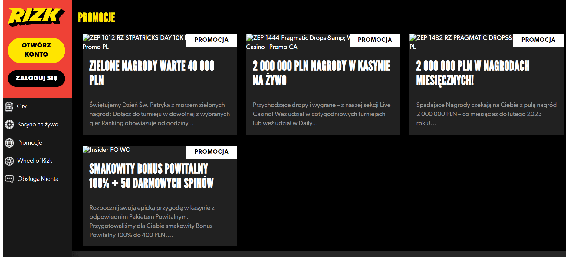 Oprócz tego mamy tutaj odrębną sekcję opisaną jako kasyno na żywo, w której możemy zagrać we wspaniałe gry z prawdziwymi krupierami i krupierkami oraz streamingiem wideo. To najbardziej zaawansowana forma rozgrywek hazardowych w Internecie, a w Rizk Casino mamy naprawdę ofertę z najwyższej półki!