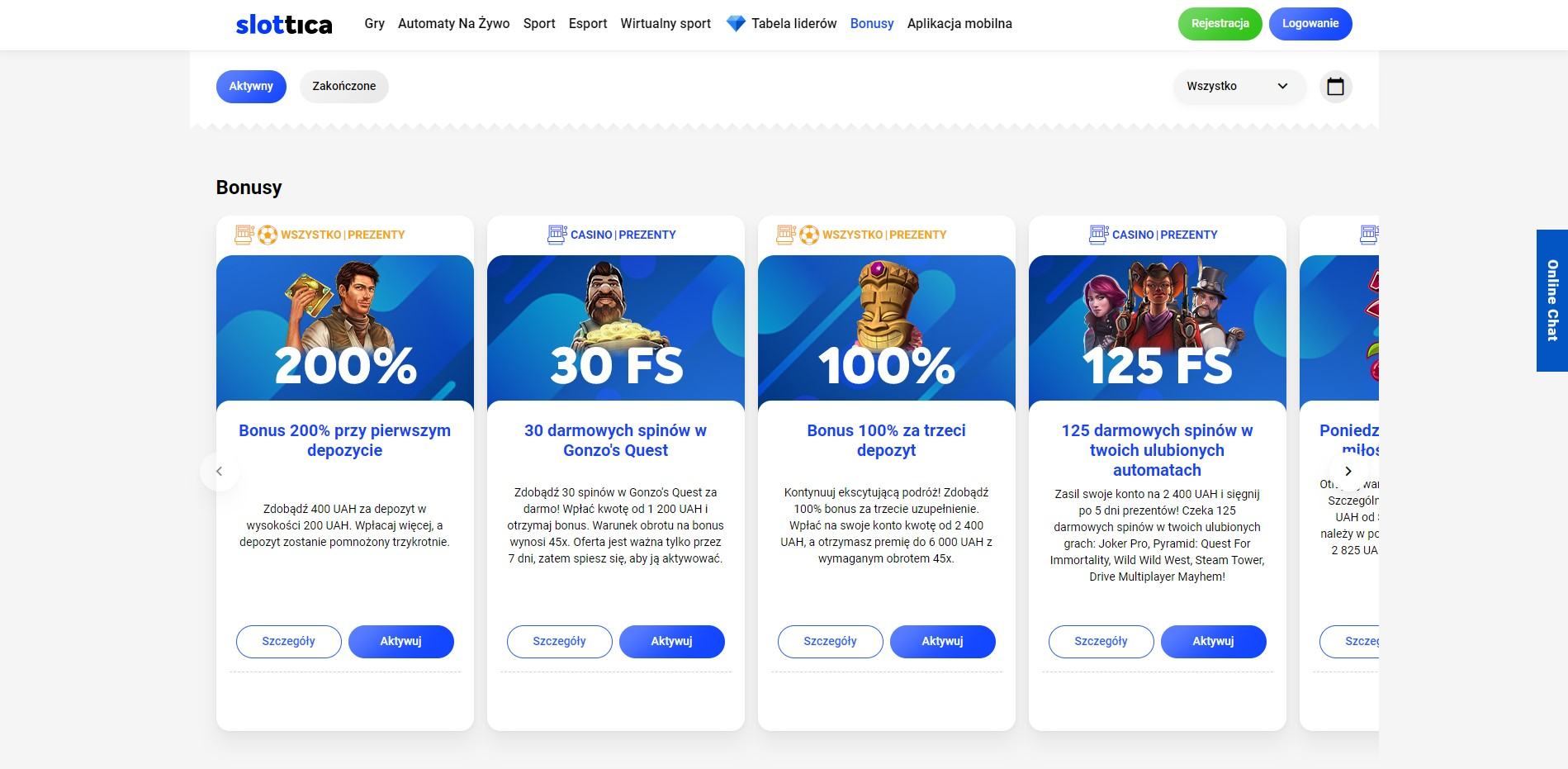 Bonusy dostepne w Slottica
